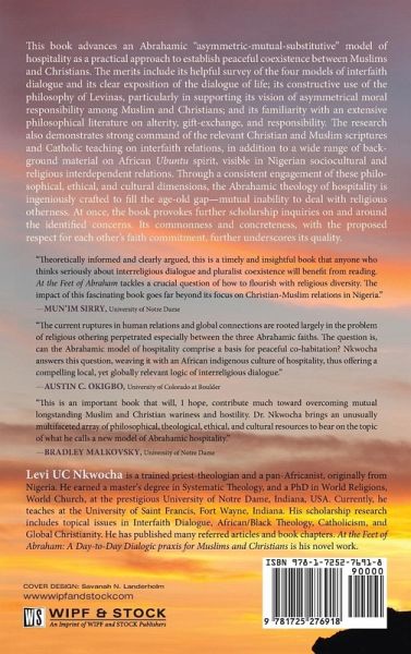 This book advances an Abrahamic "asymmetric-mutual-substitutive" model of hospitality as a practical approach to establish peaceful coexistence between Muslims and Christians. The merits include its helpful survey of the four models of interfaith dialogue and its clear exposition of the dialogue of life; its constructive use of the philosophy of Levinas, particularly in supporting its vision of asymmetrical moral responsibility among Muslim and Christians; and its familiarity with an extensive philosophical literature on alterity, gift-exchange, and responsibility. The research also demonstrates strong command of the relevant Christian and Muslim scriptures and Catholic teaching on interfaith relations, in addition to a wide range of background material on African Ubuntu spirit, visible in Nigerian sociocultural and religious interdependent relations. Through a consistent engagement of these philosophical, ethical, and cultural dimensions, the Abrahamic theology of hospitality is ingeniously crafted to fill the age-old gap--mutual inability to deal with religious otherness. At once, the book provokes further scholarship inquiries on and around the identified concerns. Its commonness and concreteness, with the proposed respect for each other's faith commitment, further underscores its quality.