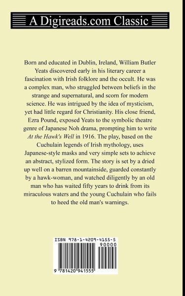 Born and educated in Dublin, Ireland, William Butler Yeats discovered early in his literary career a fascination with Irish folklore and the occult. He was a complex man, who struggled between beliefs in the strange and supernatural, and scorn for modern science. He was intrigued by the idea of mysticism, yet had little regard for Christianity. His close friend, Ezra Pound, exposed Yeats to the symbolic theatre genre of Japanese Noh drama, prompting him to write "At the Hawk's Well" in 1916. The play, based on the Cuchulain legends of Irish mythology, uses Japanese-style masks and very simple sets to achieve an abstract, stylized form. The story is set by a dried up well on a barren mountainside, guarded constantly by a hawk-woman, and watched diligently by an old man who has waited fifty years to drink from its miraculous waters and the young Cuchulain who fails to heed the old man's warnings.