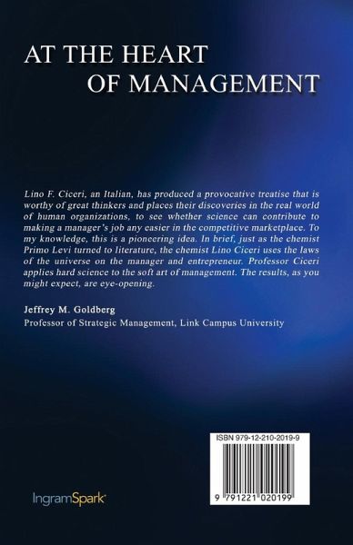 For those who aspire to become great managers At the Heart of Management may be something other than a world changer, but that doesn't mean it is written without ambition. It is for individuals aspiring to become great managers and master what it takes for true success. The initial eight chapters of the book present a comprehensive approach, which combines essential elements into a cohesive plan. Chapters 9 and 10 and some parts of Chapter 5 introduce new perspectives, including the exponential law in growth and decay processes. It is not surprising that exponential processes, which govern our lives, also apply to management rather than linear ones and have a significant impact on results. The book simplifies the core concepts taught in an MBA, clarifying the language and introducing fresh ideas inspired by scientific analogies. Finally, it hints at how competitive factors can lead to exponential results.