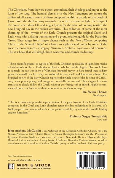 The Christians, from the very outset, committed their theology and prayer to the form of the song. The hymnal elements in the New Testament are among the earliest of all strands, some of them composed within a decade of the death of Jesus. From the third century onwards it was their custom to light the lamps of the house when dusk fell, and sing a hymn, for the onset of evening marked the new liturgical day in the earliest centuries. This collection of some of the most charming of the hymns of the Early Church presents the original Greek and Latin verse with a facing translation and a pronunciation guide for the Byzantine Greek. They range from simple chants such as the Phos Hilaron, comparing Christ to the "cheerful light" of a lamp, to sophisticated pieces by some of the great rhetoricians such as Gregory Nazianzen, Ambrose, Synesios, and Romanos. This is a book that will delight both academic and church readerships.