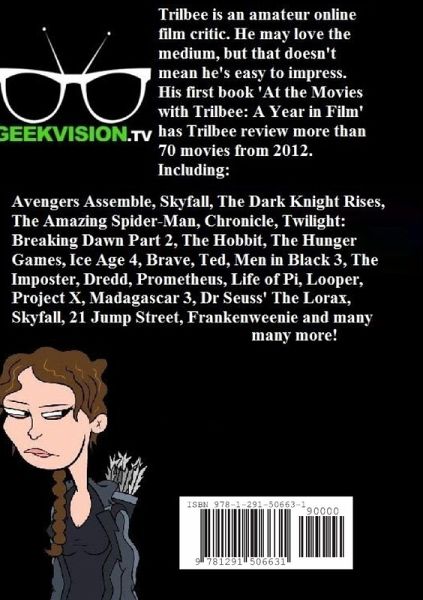 Trilbee is an amateur online film critic. He may love the medium, but that doesn't mean he's easy to impress. His first book 'At the Movies with Trilbee: A Year in Film' has Trilbee review more than 70 movies from 2012. Including: Avengers Assemble, Skyfall, The Dark Knight Rises, The Amazing Spider-Man, Chronicle, Twilight: Breaking Dawn Part 2, The Hobbit, The Hunger Games, Ice Age 4, Brave, Ted, Men in Black 3, The Imposter, Dredd, Prometheus, Life of Pi, Looper and many many more! All these reviews offer in-depth, insightful and honest analysis and gives the reader a comprehensive guide for what movies to watch (and avoid) from one of the biggest years in movie history! Featuring artwork by Jack Evans - http://moonmen.wix.com/flippedhyenacartoons