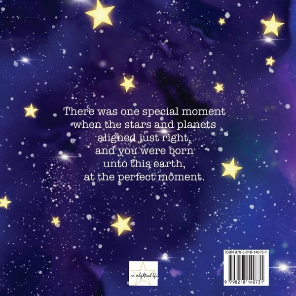 This is a story of sweet serendipity, when, through the grace of God and the power of the universe, a new baby is born unto the earth at the perfect moment. It helps to teach children how very special they are. How they were born to live this life as heavenly and earthly elements came together to create the miracle of life. How the shining stars, the moon, a wisp of wind, angels singing, all at the perfect moment, helped to bring this perfect little soul to you.