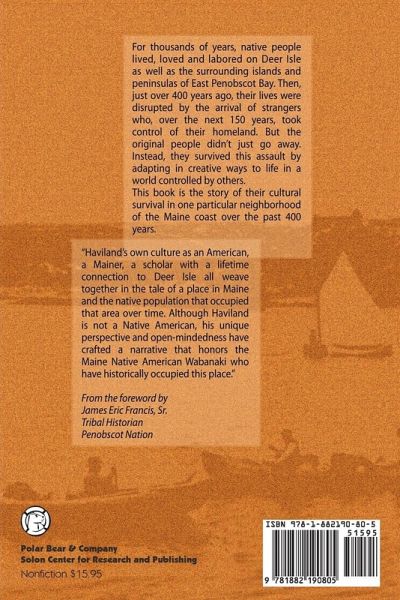 For thousands of years, native people lived, loved and labored on Deer Isle as well as the surrounding islands and peninsulas of east Penobscot Bay. Then, just over 400 years ago, their lives were disrupted by the arrival of strangers who, over the next 150 years, took control of their homeland. But the original people didn't just go away. Instead they survived this assault by adapting in creative ways to life in a world controlled by others. This book is the story of their cultural survival in one particular neighborhood of the Maine coast over the past 400 years. (Includes 38 black-and-white illustrations.)