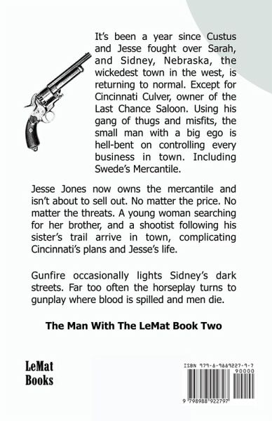 "Welcome to Sidney, Nebraska - 'the wickedest town in the west.' Where gunfire occasionally lights up the dark streets and blood is spilled far too often. This is where Custus Leverette and Jesse once fought over Sarah, but now, a year later, things seem to be returning to normal - except for the notorious Cincinnati Culver, owner of the Last Chance Saloon. With his gang of misfits and thugs, the small man with a big ego is determined to control every business in town, including Swede's Mercantile. But Jesse Jones, the new owner of the mercantile, isn't about to sell out, no matter the price. As if things weren't complicated enough, a young woman searching for her brother and a shootist following his sister's trail arrives in town, further disrupting Cincinnati's plans and Jesse's life. But when gunfire erupts and men start dying, what will become of the town of Sidney? Will Jesse be able to protect his business and the people he cares about, or will Cincinnati's ruthless ambition bring chaos to this once peaceful town? Find out in 'At the Point of a Gun' - book two of 'The Man with the LeMat series.' If you enjoyed the thrilling gunfights and complex characters of 'Death Rode to Lodgepole Creek,' you won't want to miss the next installment in this gripping series. Buy now and experience the Wild West like never before."