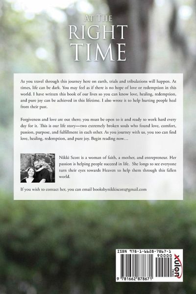 As you travel through this journey here on earth, trials and tribulations will happen. At times, life can be dark. You may feel as if there is no hope of love or redemption in this world. I have written this book of our lives so you can know love, healing, redemption, and pure joy can be achieved in this lifetime. I also wrote it to help hurting people heal from their past. Forgiveness and love are out there; you must be open to it and ready to work hard every day for it. This is our life story-two extremely broken souls who found love, comfort, passion, purpose, and fulfillment in each other. As you journey with us, you too can find love, healing, redemption, and pure joy. Begin reading now... Nikki Scott is a woman of faith, a mother, and entrepreneur. Her passion is helping people succeed in life. She longs to see everyone turn their eyes towards Heaven to help them through this fallen world. If you wish to contact her, you can email booksbynikkiscott@gmail.com