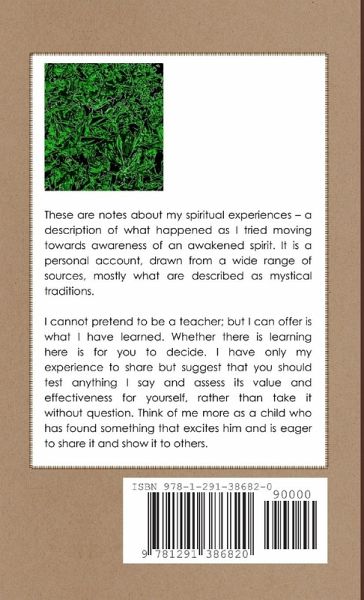 Notes about my spiritual experiences - a description of what happened as I tried moving towards awareness of an awakened spirit. This is a personal account, drawn from a wide range of sources, mostly what are described as mystical traditions. A ramble through ideas that have seemed most important to me.