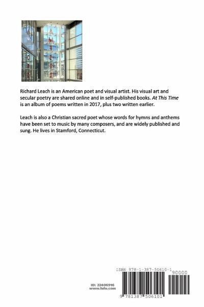 Poet and visual artist Richard Leach calls this book an album, for the range of forms and themes it includes. Free verse, metered and rhymed verse, and blues lyrics are here; daily life, American politics, and surrealism ("Seven Jungles of Bells", for example) are here. 47 of the poems were written in 2017. Two more written earlier bookend the collection.