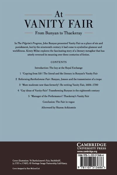 Introduction: the boy at the Royal Exchange 1. 'Copying from life': the literal and the literary in Bunyan's Vanity Fair 2. Reforming Bartholomew Fair: Bunyan, Jonson, and the transmission of a trope 3. 'More moderate now than formerly': re-writing Vanity Fair, 1684-1700 4. 'Gay ideas of Vanity-Fair': transforming Bunyan in the eighteenth century 5. 'Manager of the performance': Thackeray's Vanity Fair Conclusion: the fair in vogue Afterword Sharon Achinstein.