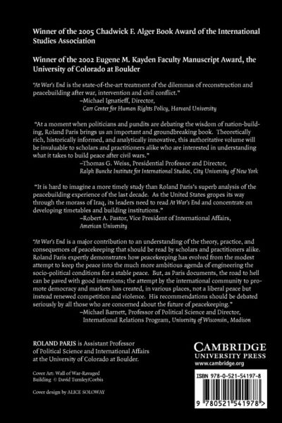 Exploring the challenge of rehabilitating countries after civil wars, this study finds that attempting to transform war-shattered states into liberal democracies with market economies can backfire badly. Roland Paris contends that the rapid introduction of democracy and capitalism in the absence of effective institutions can increase rather than decrease the danger of renewed fighting. A more effective approach to post-conflict peacebuilding would be to introduce political and economic reform in a gradual and controlled manner.