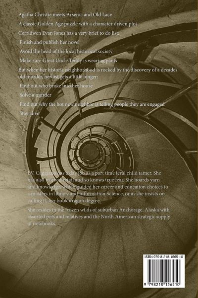Agatha Christie meets Arsenic and Old Lace A classic Golden Age puzzle with a character driven plot Cerridwen Evan Jones has a very brief to do list: Finish and publish her novel Avoid the head of the local historical society Make sure Great Uncle Teddy is wearing pants But when her historic neighborhood is rocked by the discovery of a decades old murder, her list gets a little longer: Find out who broke into her house Solve a murder Find out why the hot new neighbor is telling people they are engaged Stay alive