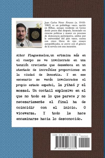 Aitor Pleguezuelos,un ertzaina más en el cuerpo se ve involucrado en una tensión creciente que desemboca en un atentado de increíbles proporciones en la ciudad de Donostia. Y en ese escenario se verán involucrados el propio estado español, la yihad y el mossad. Un coctail explosivo en el que no todo es lo que parece y no necesariamente el final ha de coincidir con el inicio. O viceversa. Y todo le hace encaminarse hacia lo desconocido.