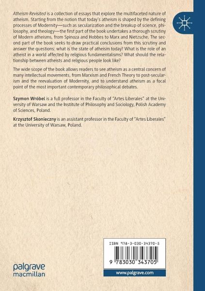 Atheism Revisited is a collection of essays that explore the multifaceted nature of atheism. Starting from the notion that today's atheism is shaped by the defining processes of Modernity-such as secularization and the breakup of science, philosophy, and theology-the first part of the book undertakes a thorough scrutiny of Modern atheisms, from Spinoza and Hobbes to Marx and Nietzsche. The second part of the book seeks to draw practical conclusions from this scrutiny and answer the questions: what is the state of atheism today? What is the role of an atheist in a world affected by religious fundamentalisms? What should the relationship between atheists and religious people look like?