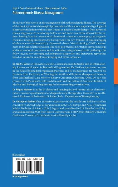 The focus of this book is on the management of the atherosclerotic disease. The coverage of this book spans from histological presentation of the various stages of atherosclerotic lesions to the earliest studies in atherosclerosis therapy, from advanced clinical diagnosis to monitoring, follow-up, and home-care of the atherosclerotic patient.