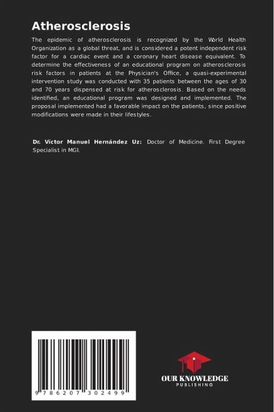 The epidemic of atherosclerosis is recognized by the World Health Organization as a global threat, and is considered a potent independent risk factor for a cardiac event and a coronary heart disease equivalent. To determine the effectiveness of an educational program on atherosclerosis risk factors in patients at the Physician's Office, a quasi-experimental intervention study was conducted with 35 patients between the ages of 30 and 70 years dispensed at risk for atherosclerosis. Based on the needs identified, an educational program was designed and implemented. The proposal implemented had a favorable impact on the patients, since positive modifications were made in their lifestyles.