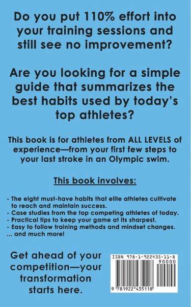 ¿¿¿LAUNCH PRICE ENDING SOON¿¿¿ Do you put 110% effort into your training sessions and still see no improvement? Are you looking for a simple guide that summarizes the best habits used by today's top athletes? The truth is... some of us train our hearts out and see little improvement. And some of us are just getting started, and don't know where to begin. This book is for athletes from ALL LEVELS of experience-from your first few steps to your last stroke in an Olympic swim. You might be looking for motivation to go on your first run. Or you might be ready to trial for your country's Olympic team. Either way, it is guaranteed that you will learn something new from reading this book. If you are ready to make a positive change in the way you train, play, or compete, this book is for you. Athletes who treat every day as an opportunity to improve their abilities and perform better in the next game, match, or competition have a genuine chance of becoming champions. This book involves: The eight must-have habits that elite athletes cultivate to reach and maintain success. Case studies from the top competing athletes of today. Practical tips to keep your game at its sharpest. Easy to follow training methods and mindset changes. ... and much more! Get ahead of your competition and buy this book now-your transformation starts here.