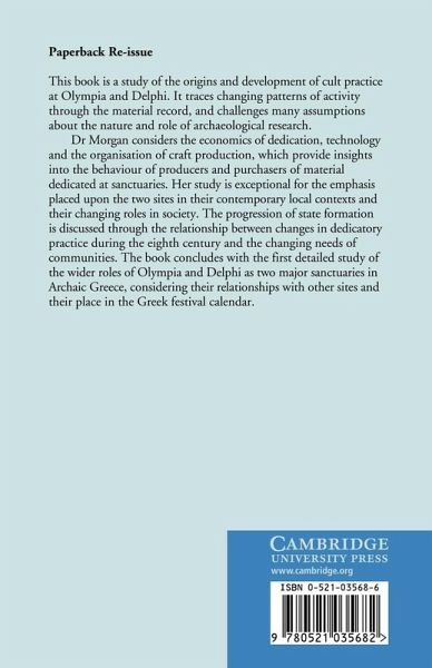 This book is a study of the origins and development of cult practice at Olympia and Delphi. It traces changing patterns of activity through the material record, and challenges many assumptions about the nature and role of the archaeological data. Dr Morgan considers the economics of dedication, technology and the organization of craft production, which provide insights into the behaviour of producers and purchasers of material dedicated at sanctuaries. Her study is exceptional for the emphasis placed upon the two sites in their contemporary local contexts and their changing roles in society. The progression of state formation is discussed through the relationship between changes in dedicatory practice during the eighth century and the changing needs of communities. The book concludes with a detailed study of the wider roles of Olympia and Delphi as two major sanctuaries in Archaic Greece, considering their relationships with other sites and their place in the Greek festival calendar.
