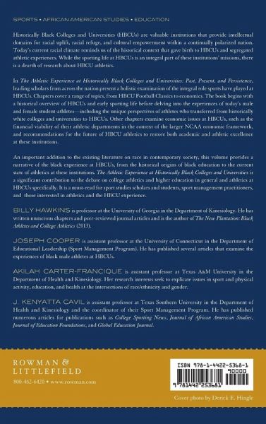Introduction, Billy Hawkins SECTION I: HISTORICAL OVERVIEW Chapter 1. Examining the Historical Origins of Educating Blacks in the United States: The Evolution of Historically Black Colleges and Universities Frankie G. Collins Chapter 2. Early Athletic Experiences at HBCUs: The Creation of Conferences J. Kenyatta Cavil SECTION II: THE STUDENT ATHLETE EXPERIENCES AT HBCUs Chapter 3. Black Female Athlete Experiences at HBCUs Akilah R. Carter-Francique and F. Michelle Richardson Chapter 4. The Culture of Revenue-Producing Sports at HBCUs: The Experiences of Black Male Student-Athletes I.S. Keino Miller, Jessica L. David, and Jesse A. Steinfeldt Chapter 5. Athletic Migration Experiences of Black Athletes Joseph N. Cooper and Billy Hawkins SECTION III: ECONOMIC ISSUES AND HBCU ATHLETICS Chapter 6. Legal Issues and the Black Female Athlete's Collegiate Experience at HBCUs Courtney Flowers Chapter 7. "It's HBCU Classic Time!:" Origins and the Perseverance of HBCU Football Classics R. P