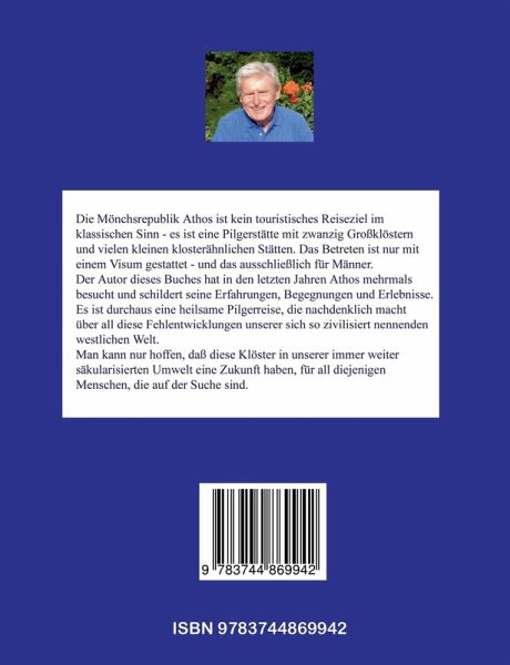 Athos - Unterwegs im Garten der Gottesmutter. Der Autor hat den Heiligen Berg Athos (die Mönchsrepublik Athos) mehrmals besucht und hat seine Eindrücke und Erlebnisse in diesem Buch zusammengefasst. Zusätzlich enthält das Buch neben dem Text viele Bilder, die den Text plastisch ergänzen