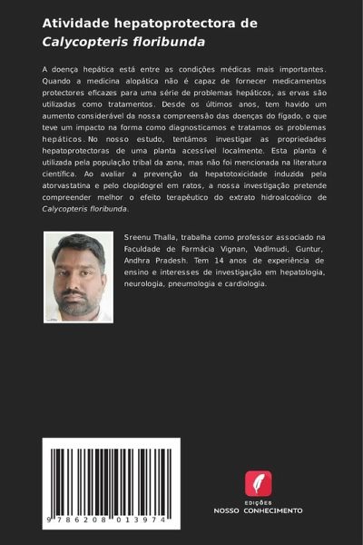 A doença hepática está entre as condições médicas mais importantes. Quando a medicina alopática não é capaz de fornecer medicamentos protectores eficazes para uma série de problemas hepáticos, as ervas são utilizadas como tratamentos. Desde os últimos anos, tem havido um aumento considerável da nossa compreensão das doenças do fígado, o que teve um impacto na forma como diagnosticamos e tratamos os problemas hepáticos. No nosso estudo, tentámos investigar as propriedades hepatoprotectoras de uma planta acessível localmente. Esta planta é utilizada pela população tribal da zona, mas não foi mencionada na literatura científica. Ao avaliar a prevenção da hepatotoxicidade induzida pela atorvastatina e pelo clopidogrel em ratos, a nossa investigação pretende compreender melhor o efeito terapêutico do extrato hidroalcoólico de Calycopteris floribunda.