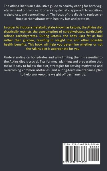 The Atkins Diet is an exhaustive guide to healthy eating for both vegetarians and omnivores. It offers a systematic approach to nutrition, weight loss, and general health. The focus of the diet is to replace refined carbohydrates with healthy fats and proteins. In order to induce a metabolic state known as ketosis, the Atkins diet drastically restricts the consumption of carbohydrates, particularly refined carbohydrates. During ketosis, the body uses fat as fuel rather than glucose, resulting in weight loss and other possible health benefits. This book will help you determine whether or not the Atkins diet is appropriate for you. Understanding carbohydrates and why limiting them is essential to the Atkins diet is crucial. Tips for meal planning and preparation that make it easy to follow the diet, strategies for staying motivated and overcoming common obstacles, and a long-term maintenance plan to help you keep the weight off permanently.