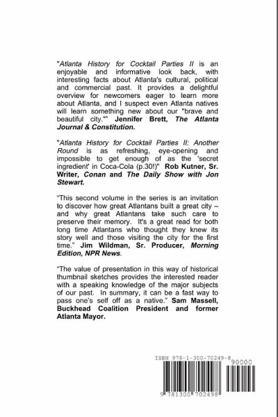 Atlanta History for Cocktail Parties II, Another Round, provides thumbnail sketches of some of the more interesting, unique and even trivial events that make up Atlanta''s rich history. Another Round is the second in a series of books intended to appeal to those with perhaps a more casual interest in Atlanta''s history. It is a collection of historical events and trivia that one might conceivably relay on a bar stool or at a cocktail party.