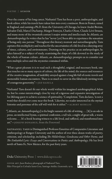 Over the course of his long career, Nathaniel Tarn has been a poet, anthropologist, and book editor, while his travels have taken him into every continent. Born in France, raised in England, and earning a Ph.D. from the University of Chicago, he knew André Breton, Salvador Dalí, Marcel Duchamp, Margot Fonteyn, Charles Olson, Claude Lévi-Strauss, and many more of the twentieth century's major artists and intellectuals. In Atlantis, an Autoanthropology he writes that he has "never (yet) been able to experience the sensation of being only one person." Throughout this literary memoir and autoethnography, Tarn captures this multiplicity and reaches for the uncertainties of a life lived in a dizzying array of times, cultures, and environments. Drawing on his practice as an anthropologist, he takes himself as a subject of study, examining the shape of a life devoted to the study of the whole of human culture. Atlantis, an Autoanthropology prompts us to consider our own multiple selves and the mysteries contained within.