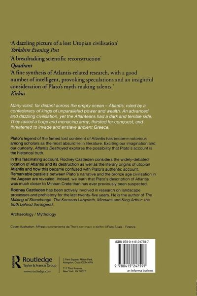 Plato's legend of Atlantis has become notorious among scholars as the absurdest lie in literature. Atlantis Destroyed explores the possibility that the account given by Plato is historically true. Rodney Castleden first considers the location of Atlantis re-examining two suggestions put forward in the early twentieth century; Minoan Crete and Minoan Thera. He outlines the latest research findings on Knossos and Bronze Age Thera, discussing the material culture, trade empire and agricultural system, writing and wall paintings, art, religion and society of the Minoan civilization. Castleden demonstrates the many parallels between Plato's narrative and the Minoan Civilization in the Aegean. Fired by the imagination a new vision of Atlantis has arisen over the last one hundred and fifty years as a lost utopia. Rodney Castleden discusses why this picture arose and xplains how it has become confused with Plato's genuine account.