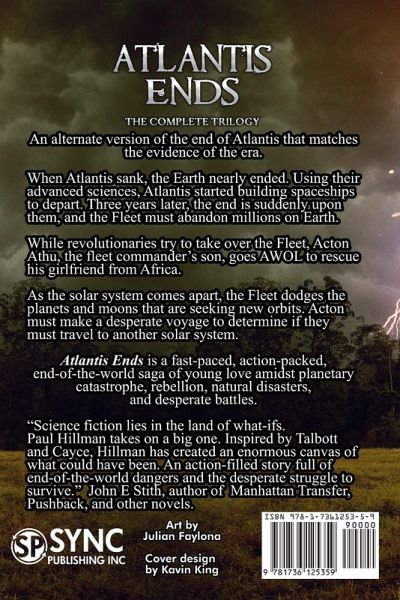 An Alternate Version and Fresh Perspective on the End of Atlantis, Rooted in the Era's Evidence. WHY did Atlantis sink? Did it have anything to do with major worldwide events 12,600 years ago? Like: The end of the Ice Age after 100,000 years. The oceans rise over 400 feet. Mass extinctions of large animals across the Northern Hemisphere. The scarring of the northwest face of every mountain peak across the Northern Hemisphere. Atlantis Ends is not just a work of fiction. It draws from a variety of sources, including Edgar Cayce's On Atlantis and David Talbott's Symbols of an Alien Sky YouTube series, to provide a comprehensive and compelling narrative. But instead of spending weeks studying the evidence (referenced in the back of the novel), Atlantis Ends brings it all together in a fast-paced trilogy. In Atlantis Ends - The Complete Trilogy. Three books in one, including The Mars Catastrophe, Desperate Measures, and Worlds Collide. When a comet disrupts the solar system, Atlanteans use their advanced technology to start building a fleet of spaceships to escape Earth's destruction. Suddenly, Mars changes course, and the end is upon them. Fleet Commander Cana Athu orders the Fleet to depart, abandoning millions still on Earth. Captain Acton Athu, the eldest son of the Fleet Commander, goes AWOL to rescue his girlfriend from Africa, unaware that she is caught up in a mass exodus. Meanwhile, Acton's brother, Pal, has disappeared, and a search for him reveals a sinister conspiracy by dissidents. Forced to flee before they were ready, the Atlantean Fleet is scattered across thousands of miles of space, and each ship struggles to regroup. During the confusion, Pal Athu's friends help the police track down the insurrectionists as they search for Pal. After Acton Athu rejoins the Fleet, moons collide, throwing the universe into chaos. The Fleet must take evasive action. To prevent a ten-thousand-year trek to find a new home planet, Acton must make one last desperate voyage into a debris field larger than Jupiter. Atlantis Ends is a fast-paced, action-packed, end-of-the-world saga of young love amidst planetary catastrophe, rebellion, intrigue, natural disasters, and desperate battles against overwhelming odds. "Science fiction lies in the land of what-ifs. Paul Hillman takes on a big one. Inspired by Talbott and Cayce, Hillman has created an enormous canvas of what could have been. An action-filled story full of end-of-the-world dangers and the desperate struggle to survive." John E. Stith, author of Manhattan Transfer, Pushback, and other novels.