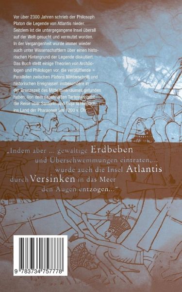 Vor über 2300 Jahren schrieb der Philosoph Platon die Legende von Atlantis nieder. Seitdem ist die untergegangene Insel überall auf der Welt gesucht und vermutet worden. In der Vergangenheit wurde immer wieder auch unter Wissenschaftlern über einen historischen Hintergrund der Legende diskutiert. Das Buch stellt einige Theorien von Archäologen und Philologen vor, die verblüffende Parallelen zwischen Platons Niederschrift und historischen Ereignissen besonders in der Bronzezeit des Mittelmeerraumes gefunden haben. Von dem sagenhaften Tartessos geht die Reise über Santorin und Troja schliesslich ins Land der Pharaonen um 1200 v. Chr.
