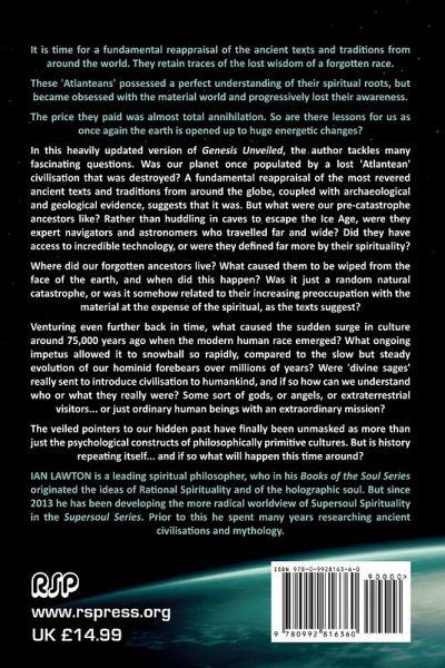 It is time for a fundamental reappraisal of the ancient texts and traditions from around the world. They retain traces of the lost wisdom of a forgotten race. These 'Atlanteans' possessed a perfect understanding of their spiritual roots, but became obsessed with the material world and progressively lost their awareness. The price they paid was almost total annihilation. So are there lessons for us as once again the earth is opened up to huge energetic changes? In this heavily updated version of Genesis Unveiled, the author tackles many fascinating questions. Was our planet once populated by a lost 'Atlantean' civilisation that was destroyed? A fundamental reappraisal of the most revered ancient texts and traditions from around the globe, coupled with archaeological and geological evidence, suggests that it was. But what were our pre-catastrophe ancestors like? Rather than huddling in caves to escape the Ice Age, were they expert navigators and astronomers who travelled far and wide? Did they have access to incredible technology, or were they defined far more by their spirituality? Where did our forgotten ancestors live? What caused them to be wiped from the face of the earth, and when did this happen? Was it just a random natural catastrophe, or was it somehow related to their increasing preoccupation with the material at the expense of the spiritual, as the texts suggest? Venturing even further back in time, what caused the sudden surge in culture around 75,000 years ago when the modern human race emerged? What ongoing impetus allowed it to snowball so rapidly, compared to the slow but steady evolution of our hominid forebears over millions of years? Were 'divine sages' really sent to introduce civilisation to humankind, and if so how can we understand who or what they really were? Some sort of gods, or angels, or extraterrestrial visitors... or just ordinary human beings with an extraordinary mission? The veiled pointers to our hidden past have finally been unmasked as more than just the psychological constructs of philosophically primitive cultures. But is history repeating itself... and if so what will happen this time around?