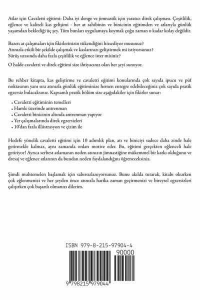 Atlar için Cavaletti e¿itimi: Daha iyi denge ve jimnastik için yarat¿c¿ direk çal¿¿mas¿. Çe¿itlilik, e¿lence ve kaliteli kas geli¿imi - her at sahibinin ve binicinin e¿itimden ve atlar¿yla günlük yäamdan bekledi¿i üç ¿ey. Tüm bunlar¿ uygulamaya koymak ço¿u zaman o kadar kolay de¿ildir. Bazen at çal¿¿malar¿ için fikirlerinizin tükendi¿ini hissediyor musunuz? At¿n¿zla etkili bir ¿ekilde çal¿¿mak ve kaslar¿n¿z¿ geli¿tirmek mi istiyorsunuz? Sürü¿ s¿ras¿nda daha fazla çe¿itlilik ve e¿lence ister misiniz? O halde cavaletti ve direk e¿itimi size ihtiyac¿n¿z olan her ¿eyi sunuyor. Bu rehber kitapta, kas geli¿tirme ve cavaletti e¿itimi konular¿nda çok say¿da ipucu ve püf noktas¿n¿n yan¿ s¿ra at¿n¿zla günlük e¿itiminize hemen entegre edebilece¿iniz çok say¿da pratik egzersiz bulacaks¿n¿z. Kapsaml¿ pratik bölüm size ää¿dakiler için fikirler sunar:Cavaletti e¿itiminin temelleri Hamle üzerinde antrenman Cavaletti binicinin alt¿nda antrenman yap¿yor Yer çal¿¿malar¿nda direk egzersizleri 10'dan fazla illüstrasyon ve çizim ile Hedefe yönelik cavaletti e¿itimi için 10 ad¿ml¿k plan, at¿ ve biniciyi sadece daha zinde hale getirmekle kalmaz, ayn¿ zamanda onlar¿ motive eder. Bu, e¿itimi gerçekten e¿lenceli hale getiriyor! Ayr¿ca serbest atlaman¿n neden at¿n¿z¿n jimnasti¿ine mükemmel bir katk¿ oldu¿unu ve dresaj ve e¿lence atlar¿n¿n da bundan neden faydaland¿¿¿n¿ ö¿reneceksiniz. ¿imdi muhtemelen bälamak için sab¿rs¿zlan¿yorsunuz. Bunu ak¿lda tutarak, kitab¿ okurken çok e¿lenmenizi ve her ¿eyden önce at¿n¿zla harika zaman geçirmenizi ve bireysel egzersizleri çal¿¿¿rken çok bäar¿l¿ olman¿z¿ dilerim.
