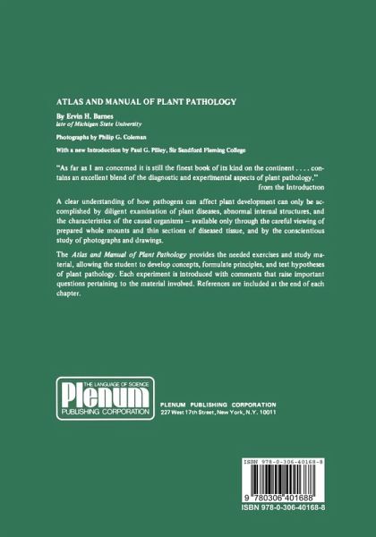 Ideally a textbook should integrate with the lectures and labs in a science course. Select ing such a book can be an onerous (and sometimes impossible) task for the teacher. Students are wary of getting stuck with a "useless" book, i. e. , one to which the instructor never refers. The reader probably has some practical appreciation of their concern. I remem ber an instructor who not only denounced the very text he had chosen, but also informed the class that he wouldn't be using it. This was after I had already purchased a copy! Being mindful of the foregoing, I decided to try Barnes' Atlas and Manual of Plant Pathology in 1973. Six years and 800 students later I have no regrets about my choice. As far as I am concerned it is still the finest book of its kind on this continent. Barnes' Atlas contains an excellent blend of the diagnostic and experimental aspects of plant pathology. His treatment of each disease on an individual basis allows the instruc tor to omit some pathogens without disturbing the book's continuity. My one-semester course in Forest Pathology is largely descriptive. Strong emphasis is placed on field recognition of symptoms and signs. This is facilitated by Barnes' technique. In a sequence of photographs, the diseased plant or part is first viewed as a whole to show the general symptoms. This is usually followed by a close-up ofthe signs (i. e.