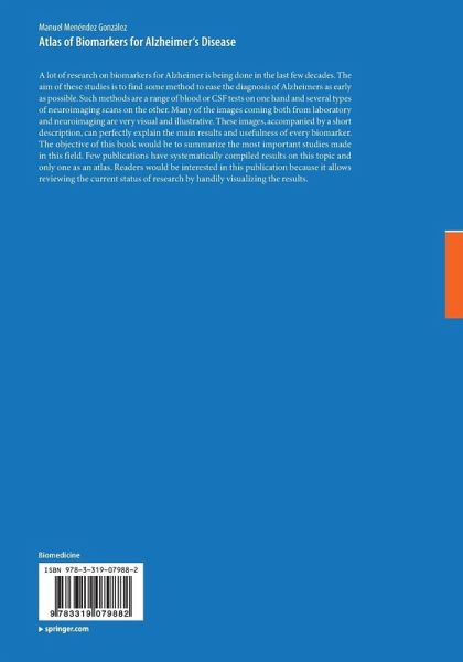 A lot of research on biomarkers for Alzheimer is being done in the last few decades. The aim of these studies is to find some method to ease the diagnosis of Alzheimers as early as possible. Such methods are a range of blood or CSF tests on one hand and several types of neuroimaging scans on the other. Many of the images coming both from laboratory and neuroimaging are very visual and illustrative. These images, accompanied by a short description, can perfectly explain the main results and usefulness of every biomarker. The objective of this book would be to summarize the most important studies made in this field. Few publications have systematically compiled results on this topic and only one as an atlas. Readers would be interested in this publication because it allows reviewing the current status of research by handily visualizing the results.