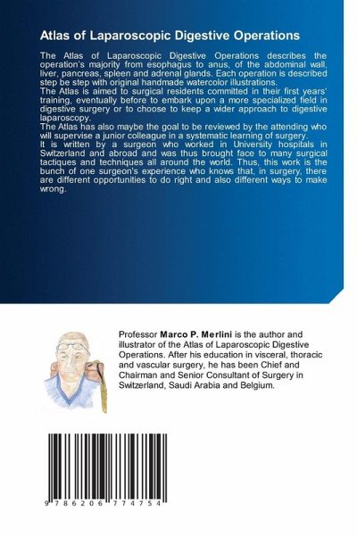 The Atlas of Laparoscopic Digestive Operations describes the operation's majority from esophagus to anus, of the abdominal wall, liver, pancreas, spleen and adrenal glands. Each operation is described step be step with original handmade watercolor illustrations.The Atlas is aimed to surgical residents committed in their first years' training, eventually before to embark upon a more specialized field in digestive surgery or to choose to keep a wider approach to digestive laparoscopy.The Atlas has also maybe the goal to be reviewed by the attending who will supervise a junior colleague in a systematic learning of surgery.It is written by a surgeon who worked in University hospitals in Switzerland and abroad and was thus brought face to many surgical tactiques and techniques all around the world. Thus, this work is the bunch of one surgeon's experience who knows that, in surgery, there are different opportunities to do right and also different ways to make wrong.