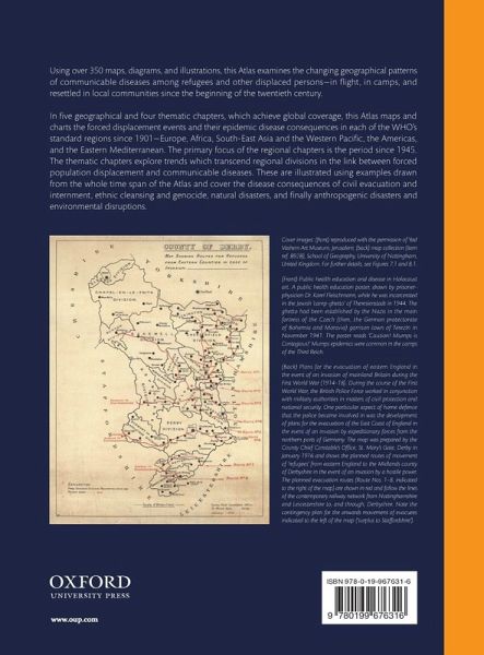 Refugees and displaced populations are a highly relevant, controversial topic of the modern socio-political landscape, with images of people fleeing conflicts and natural disasters a regular occurrence in the media. They flee to perceived safe havens, but are often accompanied by sickness, starvation, poor sanitation, close contact and reduced healthcare. Infection frequently spreads among camps, and sometimes, onwards into the local population. Epidemics develop. What are these diseases, and can they be controlled? What are the health consequences for the migrating and resident populations? What might the demographic impact be? The Atlas of refugees, displaced populations, and epidemic diseases examines the globally changing geographical patterns of communicable diseases among refugees and other displaced persons - in flight, in camps, and resettled in local communities - since the beginning of the twentieth century. The book explores historical and contemporary case studies, including the First World War and its aftermath, the impact of genocides across the twentieth and early twenty-first centuries, Mozambican refugees traversing Central Africa in the late 1980's, the 2010 Haiti earthquake, and the 2014 Ebola virus crisis. The book integrates theory, qualitative and quantitative data, and spatial analysis, locating examples in the context of global demographics and summarising information in an approachable way. Illustrated with over 400 maps and diagrams, case studies are presented in regional and thematic contexts to guide the reader through the displaced populations and communicable diseases over the last 116 years. The discussion covers epidemiological determinants of outbreaks, including overviews of social and political factors that motivate displacement of populations. Important information on epidemic control and the results of these actions is also provided. The Atlas of refugees, displaced populations, and epidemic diseases is an essential resource for all those interested in public health, epidemiology, demography, ecology, economic history, and the history of medicine. This rich and detailed text is ideal for both specialists and students to deepen their understanding of the topic.