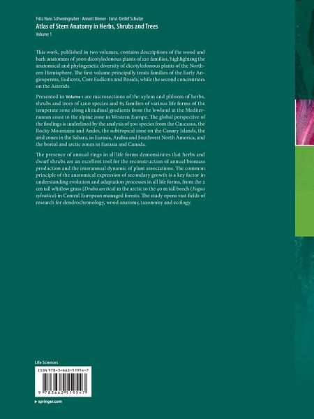 Presented in Volume 1 are microsections of the xylem and phloem of herbs, shrubs and trees of 1200 species and 85 families of various life forms of the temperate zone along altitudinal gradients from the lowland at the Mediterranean coast to the alpine zone in Western Europe. The global perspective of the findings is underlined by the analysis of 500 species from the Caucasus, the Rocky Mountains and Andes, the subtropical zone on the Canary Islands, the arid zones in the Sahara, in Eurasia, Arabia and Southwest North America, and the boreal and arctic zones in Eurasia and Canada.