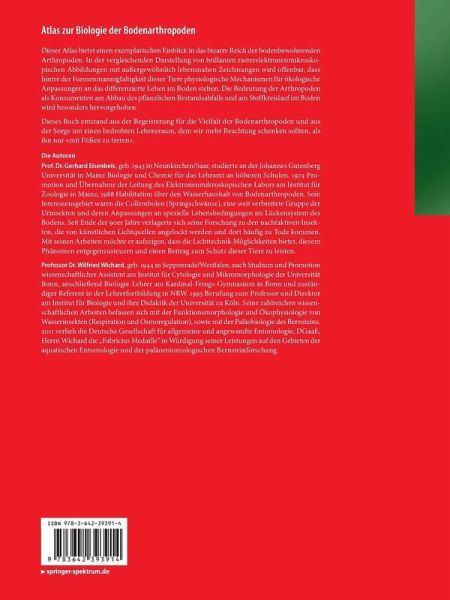 Dieser Atlas bietet einen exemplarischen Einblick in das bizarre Reich der bodenbewohnenden Arthropoden. In der vergleichenden Darstellung von brillanten rasterelektronenmikroskopischen Abbildungen mit außergewöhnlich lebensnahen Zeichnungen wird offenbar, dass hinter der Formenmannigfaltigkeit dieser Tiere physiologische Mechanismen für ökologische Anpassungen an das differenzierte Leben im Boden stehen. Die Bedeutung der Arthropoden als Konsumenten am Abbau des pflanzlichen Bestandsabfalls und am Stoffkreislauf im Boden wird besonders hervorgehoben.