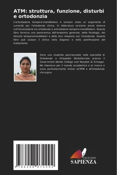 L'articolazione temporo-mandibolare è sempre stata un argomento di curiosità per l'ortodonzia clinica. In letteratura esistono prove diverse sull'associazione tra ortodonzia e articolazione temporo-mandibolare. Questo libro fornisce una panoramica dell'anatomia generale, della fisiologia, dei disturbi temporomandibolari e della loro relazione con l'ortodonzia. Questo libro può aiutare il clinico nella diagnosi e nella pianificazione del trattamento.