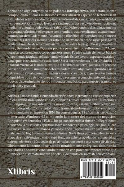 Formando algo enigmático de palabras introspectivas. Intencionalmente componiendo dilemas misteriosos materializaron esperando lectores sean estimulados reflexionando con palabras introvertidas, mesuradas, premeditadas o circunspecta, confiando leyentes sean impulsados resolviendo encrucijadas; mediante energías poderosas de sabiduría. Dicho dominio disciplinadamente provocará reflexionar el lenguaje comprendido, tratar explicando atentamente, comunicar detalladamente. Pasatiempo filosófico elaboradamente conecta enseñanzas arcaicas, incluso persistiendo su evolución desde siglos pasados. Si…mehr