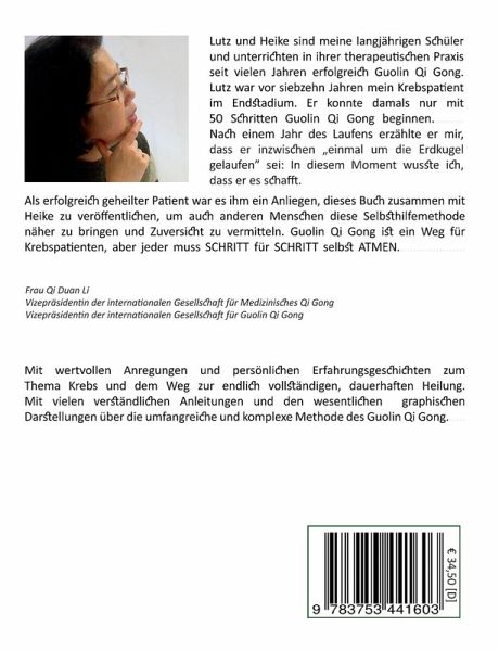 Begleitende Krebstherapie mit dem speziellen Guolin Qi Gong. Der Titel "Atmende Schritte" bezieht sich auf die Art die komplementäre Therapieform des Qi Gong - nämlich in der Natur methodisch "laufen und atmen". Dies ist mit eine der wesentlichen anerkannten Voraussetzungen zur Gesundung für Krebsbetroffene.