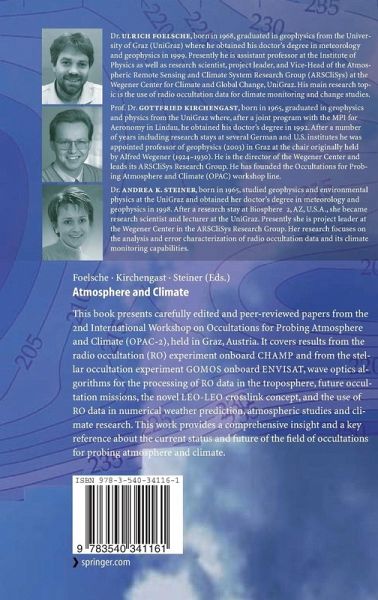 Since the early use of the occultation measurement principle for sounding pla- tary atmospheres and ionospheres, its exploitation in atmospheric remote sensing has seen tremendous advances. In this book we focus on sensors on Low Earth Orbit (LEO) satellites, which exploit solar, lunar, stellar, GNSS (Global Navi- tion Satellite Systems), and LEO-crosslink signals for observing the Earth's - mosphere and climate. The methods all share the key properties of self-calibration, high accuracy and vertical resolution, global coverage, and (if using radio signals) all-weather ca- bility. The…mehr