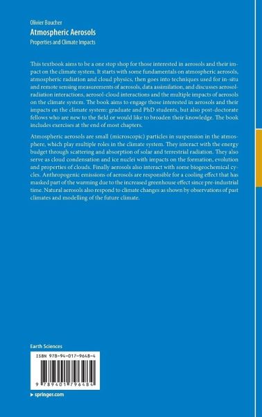 This textbook aims to be a one stop shop for those interested in aerosols and their impact on the climate system. It starts with some fundamentals on atmospheric aerosols, atmospheric radiation and cloud physics, then goes into techniques used for in-situ and remote sensing measurements of aerosols, data assimilation, and discusses aerosol-radiation interactions, aerosol-cloud interactions and the multiple impacts of aerosols on the climate system. The book aims to engage those interested in aerosols and their impacts on the climate system: graduate and PhD students, but also post-doctorate fellows who are new to the field or would like to broaden their knowledge. The book includes exercises at the end of most chapters.