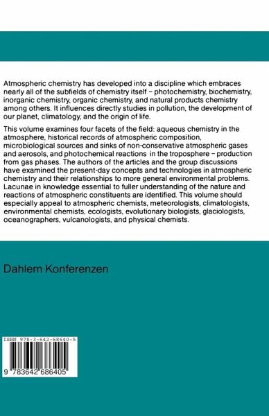 Preface.- Introduction: Chemistry of the Troposphere - Some Problems and Their Temporal Frameworks.- Factors Governing the pH, Availability of H+, and Oxidation Capacity of Rain.- The Chemical Composition of Precipitation: A Southern Hemisphere Perspective.- Some Influences of the Atmospheric Water Cycle on the Removal of Atmospheric Trace Constituents.- Aqueous Chemistry in the Atmosphere.- The History of Atmospheric Composition As Recorded in Ice Sheets.- Lake and Wetland Sediments As Records of Past Atmospheric Composition.- The History of the Atmosphere As Recorded by Carbon Isotopes.- Changes in Atmospheric Composition.- The Production and Fate of Reduced Volatile Species from Oxic Environments.- The Production and Fate of Reduced C, N, and S Gases from Oxygen-deficient Environments.- The Production and Fate of Volatile Molecular Species in the Environment: Metals and Metalloids.- Biogenic Contributions to Atmospheric Chemistry.- Physics and Chemistry of Atmospheric Ions.- Homogeneous Gas Phase Oxidation Processes in the Troposphere.- The Global Distribution of Hydroxyl.- Non-methane Organics in the Remote Troposphere.- Tropospheric Gases, Aerosols and Photochemical Reactions.- List of Participants.- Author Index.