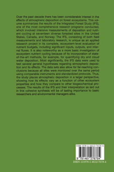 Over the past decade there has been considerable interest in the effects of atmospheric deposition on forest ecosystems. This volume summarizes the results of the Integrated Forest Study (IFS), one of the most comprehensive research programs conducted. It involved intensive measurements of deposition and nutrient cycling at seventeen diverse forested sites in the United States, Canada, and Norway. The IFS is unique as an applied research project in its complete, ecosystem-level evaluation of nutrient budgets, including significant inputs, outputs, and internal fluxes. It is also noteworthy as a more basic investigation of ecosystem nutrient cycling because of its incorporation of state-of-the-art methods, such as quantifying dry and cloud water deposition. Most significantly, the IFS data was used to test several general hypotheses regarding atmospheric deposition and its effects. The data sets also allow for far-reaching conclusions because all sites were monitored over the sameperiod using comparable instruments and standardized protocols.