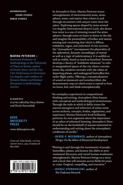 In Atmospheric Noise, Marina Peterson traces entanglements of environmental noise, atmosphere, sense, and matter that cohere in and through encounters with airport noise since the 1960s. Exploring spaces shaped by noise around Los Angeles International Airport (LAX), she shows how noise is a way of attuning toward the atmospheric: through noise we learn to listen to the sky and imagine the permeability of bodies and matter, sensing and conceiving that which is diffuse, indefinite, vague, and unformed. In her account, the "atmospheric" encompasses the physicality of the ephemeral, dynamic assemblages of matter as well as a logic of indeterminacy. It is audible as well as visible, heard as much as breathed. Peterson develops a theory of "indefinite urbanism" to refer to marginalized spaces of the city where concrete meets sky, windows resonate with the whine of departing planes, and endangered butterflies live under flight paths. Offering a conceptualization of sound as immanent and non-objectified, she demonstrates ways in which noise is central to how we know, feel, and think atmospherically.