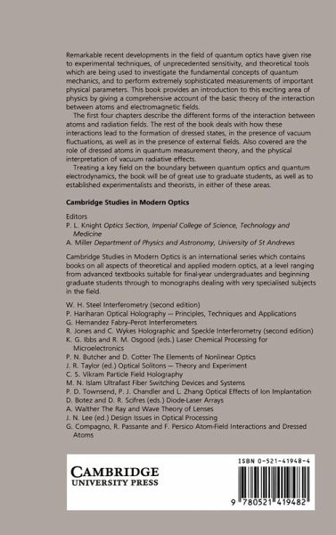 Remarkable recent developments in the field of quantum optics have given rise to experimental techniques, of unprecedented sensitivity, and theoretical tools which are being used to investigate the fundamental concepts of quantum mechanics, and to perform extremely sophisticated measurement of important physical parameters. This book provides an introduction to this exciting area of physics by giving a comprehensive account of the basic theory of the interaction between atoms and electromagnetic fields. The first four chapters describe the different forms of the interaction between atoms and radiation fields. The rest of the book deals with how these interactions lead to the formation of dressed states, in the presence of vacuum fluctuations, as well as in the presence of external fields. Also covered are the role of dressed atoms in quantum measurement theory, and the physical interpretation of vacuum radiative effects. Treating a key field on the boundary between quantum optics and quantum electrodynamics, the book will be of great use to graduate students, as well as to established experimentalists and theorists, in either of these areas.