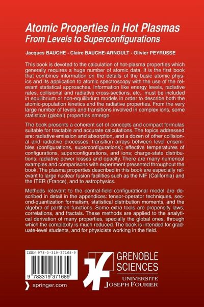 This book is devoted to the calculation of hot-plasma properties which generally requires a huge number of atomic data. It is the first book that combines information on the details of the basic atomic physics and its application to atomic spectroscopy with the use of the relevant statistical approaches. Information like energy levels, radiative rates, collisional and radiative cross-sections, etc., must be included in equilibrium or non-equilibrium models in order to describe both the atomic-population kinetics and the radiative properties. From the very large number of levels and transitions involved in complex ions, some statistical (global) properties emerge.