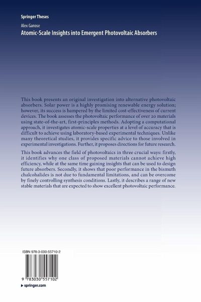 This book advances the field of photovoltaics in three crucial ways: firstly, it identifies why one class of proposed materials cannot achieve high efficiency, while at the same time gaining insights that can be used to design future absorbers. Secondly, it shows that poor performance in the bismuth chalcohalides is not due to fundamental limitations, and can be overcome by finely controlling synthesis conditions. Lastly, it describes a range of new stable materials that are expected to show excellent photovoltaic performance.