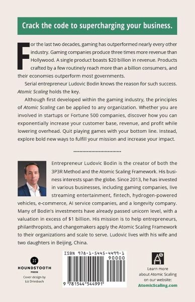 Crack the code to supercharging your business. For the last two decades, gaming has outperformed nearly every other industry. Gaming companies produce three times more revenue than Hollywood. A single product boasts $20 billion in revenue. Products crafted by a few routinely reach more than a billion consumers, and their economies outperform most governments. Serial entrepreneur Ludovic Bodin knows the reason for such success. Atomic Scaling holds the key. Although first developed within the gaming industry, the principles of Atomic Scaling can be applied to any organization. Whether you are involved in startups or Fortune 500 companies, discover how you can exponentially increase your customer base, revenue, and profit while lowering overhead. Quit playing games with your bottom line. Instead, explore bold new ways to fulfill your mission and increase your impact.