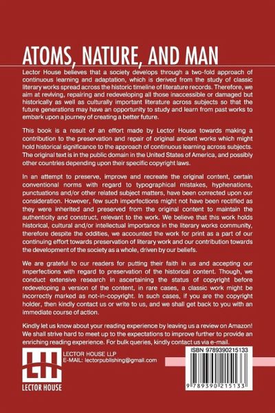 Atoms, Nature, And Man: Man-Made Radioactivity In The Environment This book is a result of an effort made by us towards making a contribution to the preservation and repair of original classic literature. In an attempt to preserve, improve and recreate the original content, we have worked towards: 1. Type-setting & Reformatting: The complete work has been re-designed via professional layout, formatting and type-setting tools to re-create the same edition with rich typography, graphics, high quality images, and table elements, giving our readers the feel of holding a 'fresh and newly' reprinted and/or revised edition, as opposed to other scanned & printed (Optical Character Recognition - OCR) reproductions. 2. Correction of imperfections: As the work was re-created from the scratch, therefore, it was vetted to rectify certain conventional norms with regard to typographical mistakes, hyphenations, punctuations, blurred images, missing content/pages, and/or other related subject matters, upon our consideration. Every attempt was made to rectify the imperfections related to omitted constructs in the original edition via other references. However, a few of such imperfections which could not be rectified due to intentional\unintentional omission of content in the original edition, were inherited and preserved from the original work to maintain the authenticity and construct, relevant to the work. We believe that this work holds historical, cultural and/or intellectual importance in the literary works community, therefore despite the oddities, we accounted the work for print as a part of our continuing effort towards preservation of literary work and our contribution towards the development of the society as a whole, driven by our beliefs. We are grateful to our readers for putting their faith in us and accepting our imperfections with regard to preservation of the historical content. HAPPY READING!